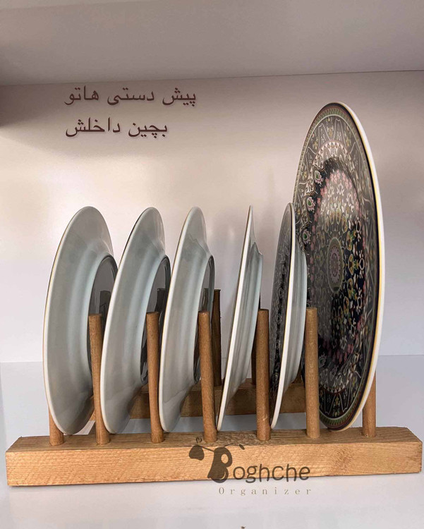 استند درب قابلمه و بشقاب چوبی مناسب جهت نظم دهی و نگهداری درب قابلمه و بشقاب