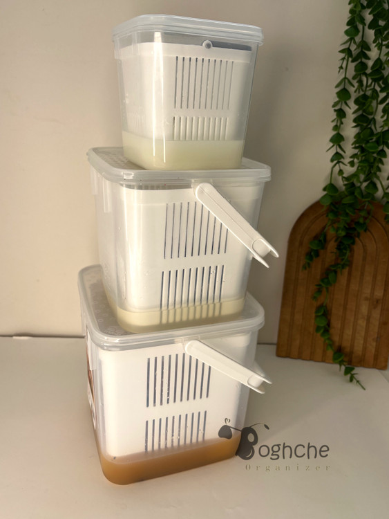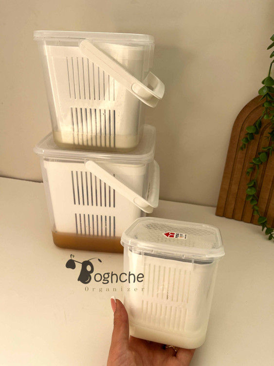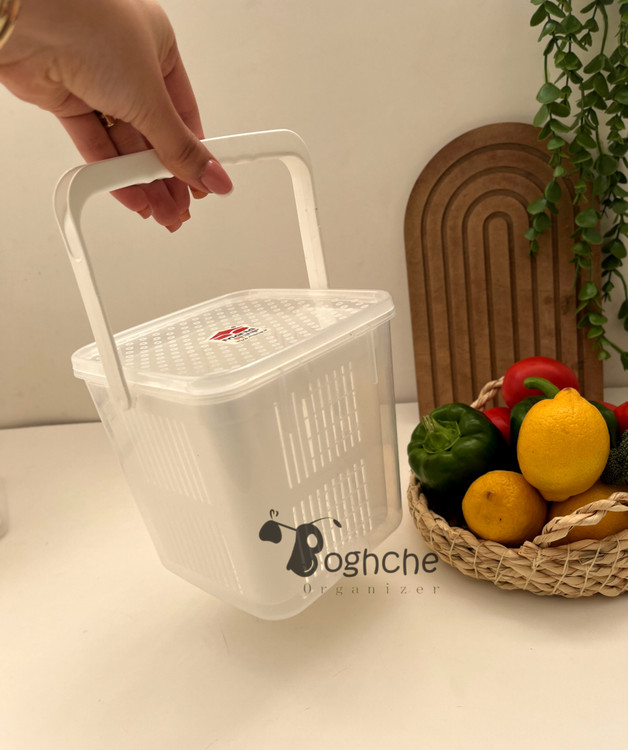با سبد داخل آن مواد غذایی از آبی که داخل اون قرار دارد جدا میکند و مانع کپک زدن آن میشود و میتوانید به اندازه مصرف مواد غذایی از آن بردارید