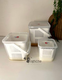 با سبد داخل آن مواد غذایی از آبی که داخل اون قرار دارد جدا میکند و مانع کپک زدن آن میشود و میتوانید به اندازه مصرف مواد غذایی از آن بردارید