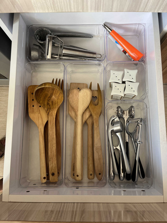 کشوهای آشپزخانه اغلب برای اقلام مختلف مورد نیاز، محل مخصوصی ندارند. ولی نمیتوان تمام قاشقها، چنگالها، کاردها و دیگر لوازم را در یک کشوی به هم ریخته نگهداری کرد. اگر چنین کاری انجام دهید برای برداشتن هر قاشق یا چنگال مجبور میشوید. کل کشو را بههم بریزید. تا آنچه میخواهید را پیدا کنید. بهترین و شیکترین راه حل، استفاده از