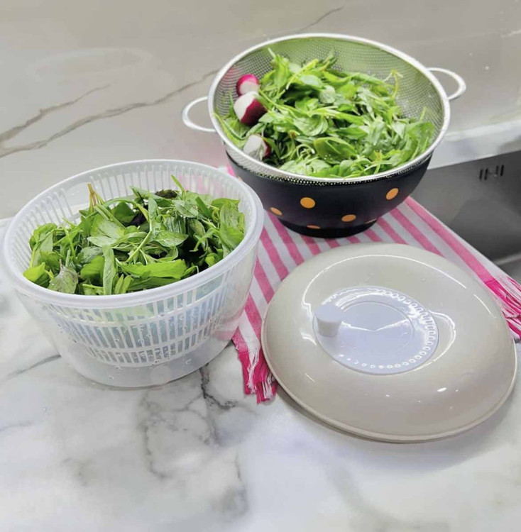 این سبزی خشک کن هاست.تا به راحتی بعد از شستشو میوه وسبزیجات انهارا داخل این ظرف ریخته و رطوبت اضافه ان را بگیرد.