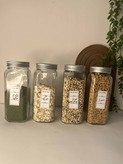 شیشه های حبوبات مککارتی در سه سایز برای نظمدهی به کابینت حبوبات.